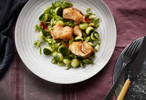 Start by salting and peppering the fillets. Heat the rapeseed oil in a frying pan and fry the fish over a medium heat for about 4 minutes on each side.