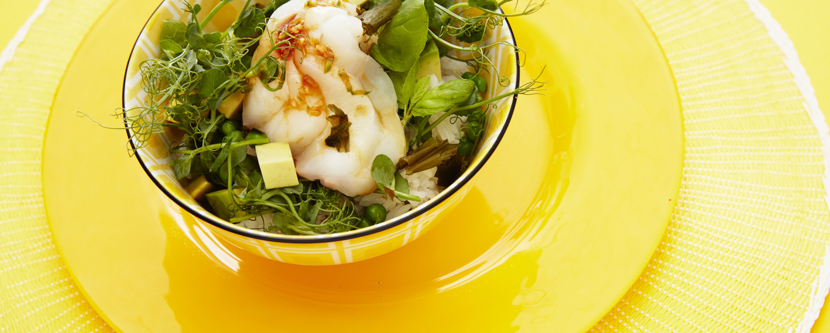 - Divide the rice between serving bowls, then add the vegetables and halibut and top with the sauce.