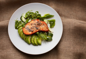 - Grate the rind of half a lime, mix with 1 tsp of lime juice and pour over the salmon.