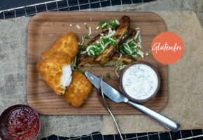 Fremgangsmåte på crispy fiskeburger, chilimajones og søtpotetfries