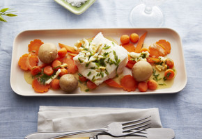 6. Bland makaroni, torsk og bladpersille sammen med den hvite