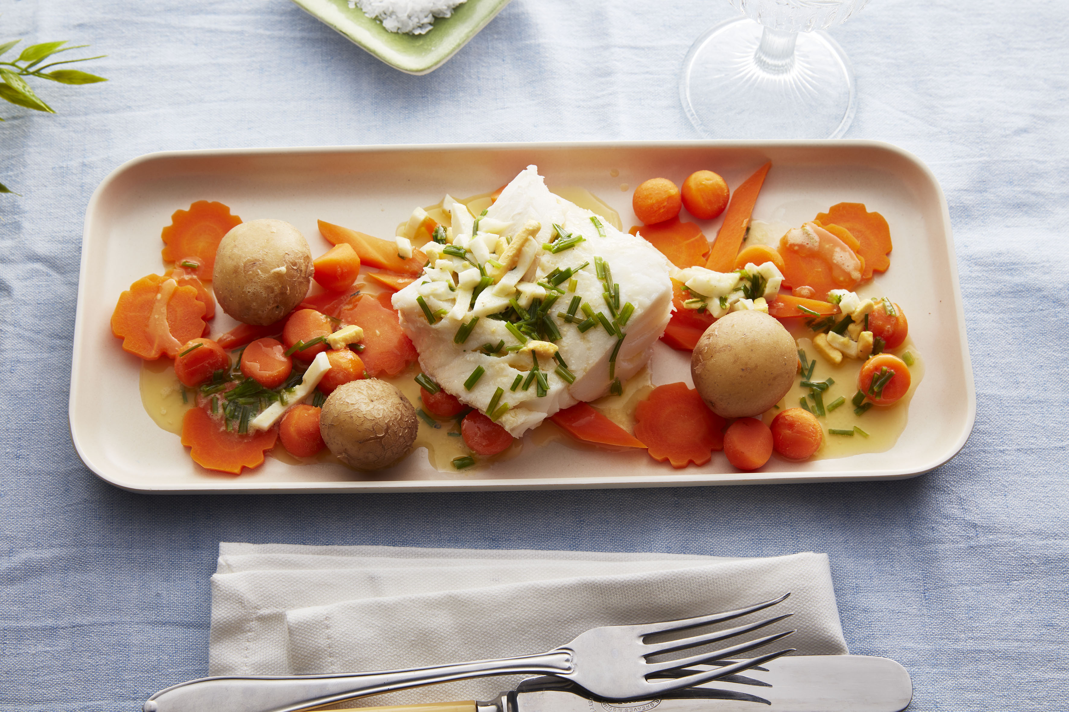 Servér gjerne fiskegrateng med kokte poteter og råkost til.