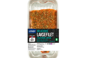 3. Ta ørretfileten ut av aluformen og legg de kuttede grønnsakene i bunnen av formen. Krydre med salt, pepper og hell rapsolje lett over grønnsakene.