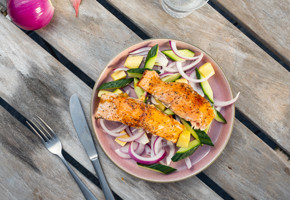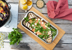 4. Fisken legges over grønnsakene og krydres med pepper og salt før den legges på grillen i 15-20 min.