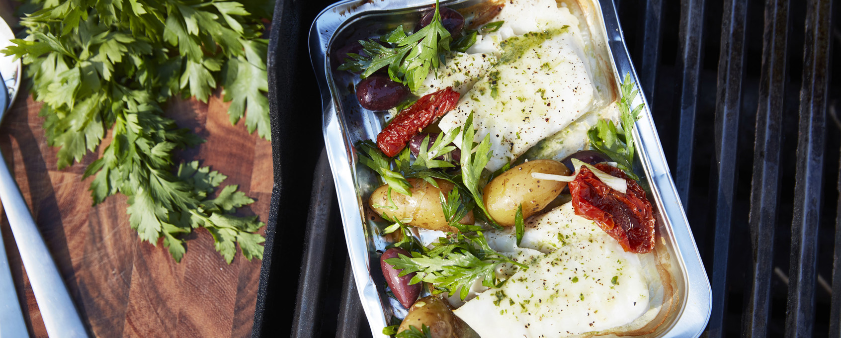 - Ugnsbaka eller grilla torsken efter anvisning på förpackningen.