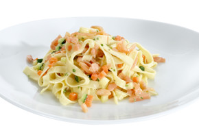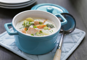 İnce, keskin bir bıçak yardımı ile somon filetolar derilerinden dikkatlice ayrılır. 5 su bardağı (yaklaşık 1 lt) su tencerede kaynamaya bırakılır. Kaynayan suya somon filetolar eklenir ve kısık ateşte yaklaşık 10 dakika haşlanır. Somonlar haşlandıktan sonra sudan çıkarılır, ayrı bir kapta küçük parçalar haline getirilir. Kaynamış balık suyu, sonradan eklenmek üzere ayrı bir kaba alınır.