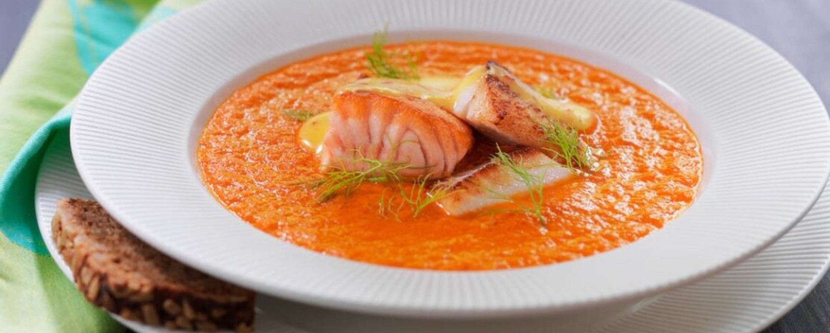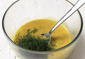Dereotu ve kıtır ekmek parçaları ile servis edilir.